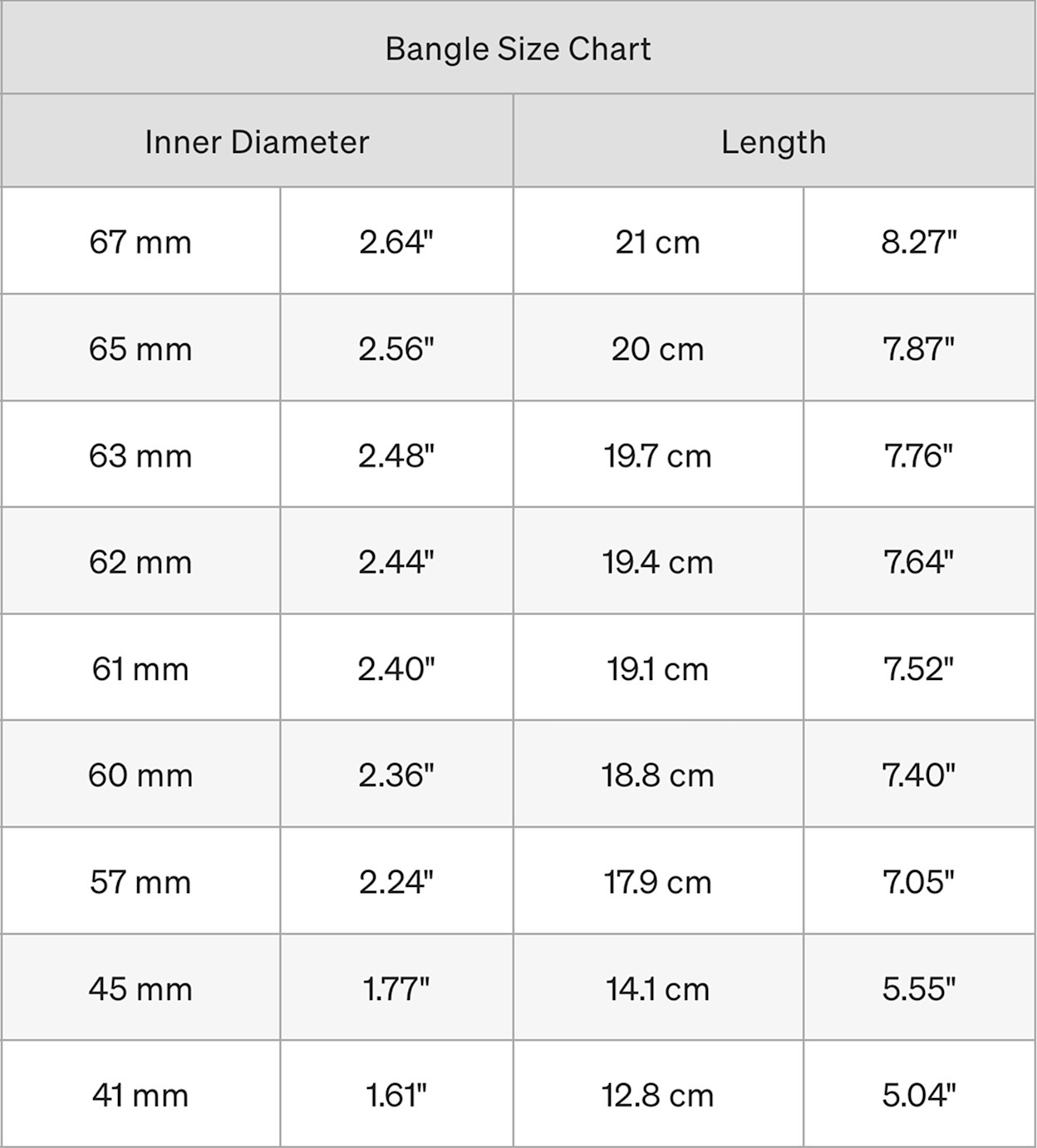 Bangle Size Chart